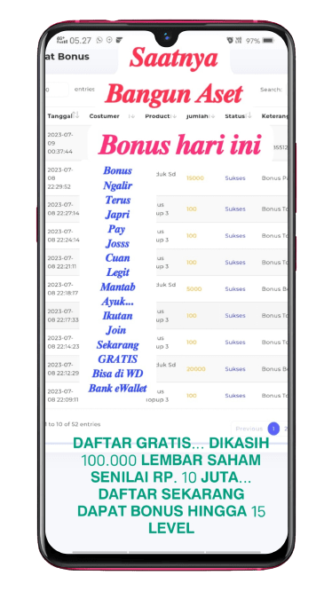 Dapat 500 Refferal = Bonus 100.000.000 lembar saham Pra IPO.