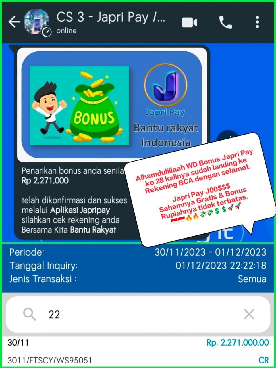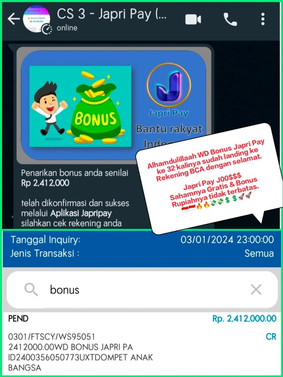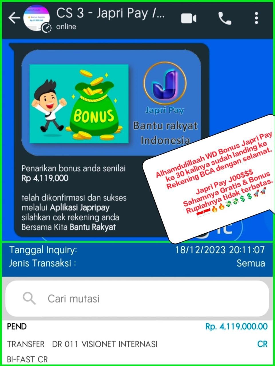 BERIKUT INI RINCIAN BONUS JAPRI PAY