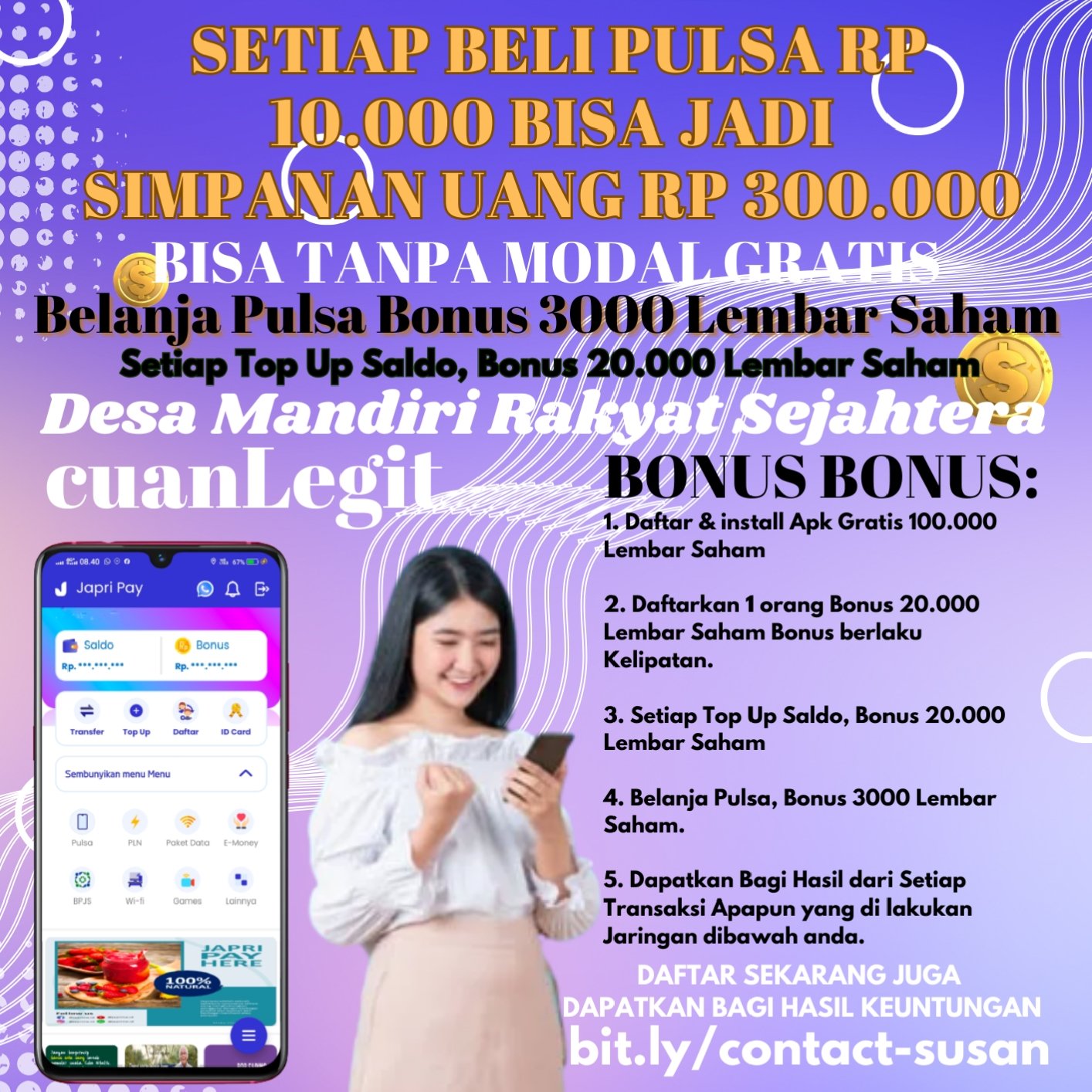 Dapatkan bonus bonus di JAPRI PAY, yaitu :